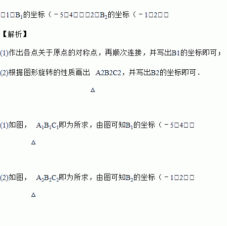 (1)以原点O为对称中心,画出△ABC关于原点O对称的△A1B1C1,并写出B1的坐标;