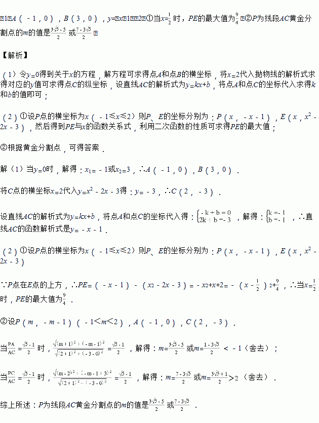 (2)P是线段AC上的一个动点,过P点作y轴的平行线交抛物线于E点,设P点的横坐标为m.