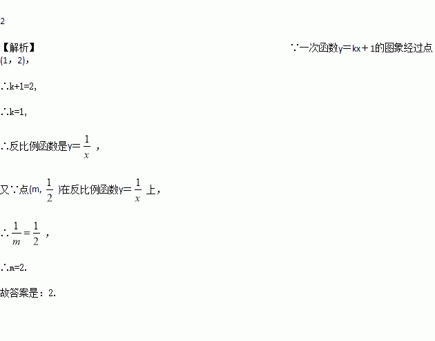 一次函数y=kx+1的图象经过点(1,2),反比例函数y=的图象经过点(m, ),则m=________.