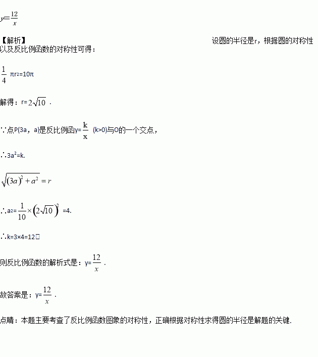 的一个交点,图中阴影部分的面积为10π,则反比例函数的解析式为__.