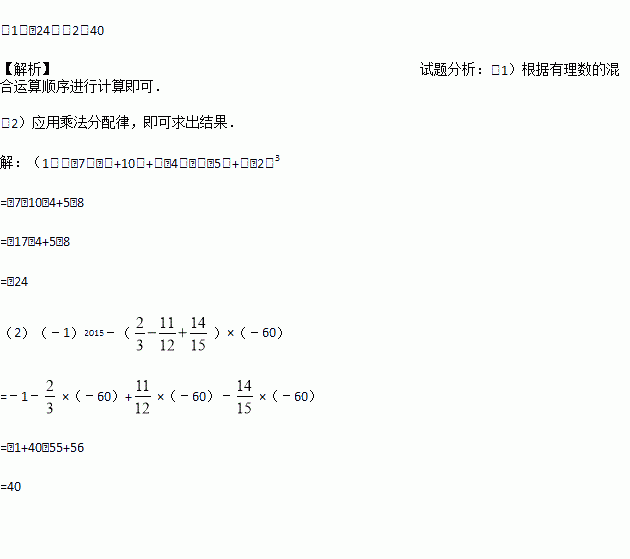 (1)(- 7)-(+ 10)+(- 4)-(- 5)+(- 2 )3