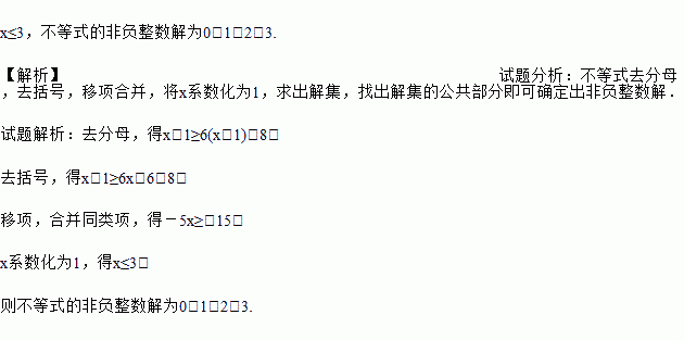 解不等式≥3(x-1)-4,并指出该不等式的非负整数解.