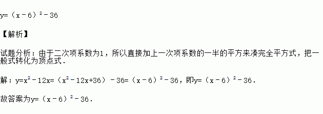 把二次函数y=x2﹣12x化为形如y=a(x﹣h)2+k的形式 .