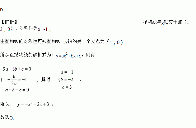 ∴抛物线顶点D的坐标为