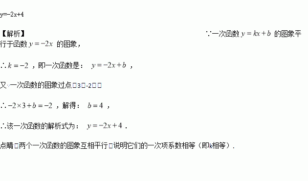一次函数y=kx+b的图象平行于函数y=﹣2x的图象,且经过点(3,﹣2),则该一次函数的表达式是y=_______.