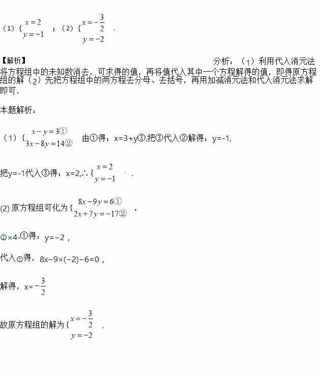 解方程组: (1) (2)