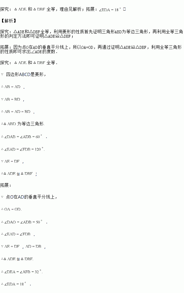 探究:如图,在菱形ABCD中,![]()