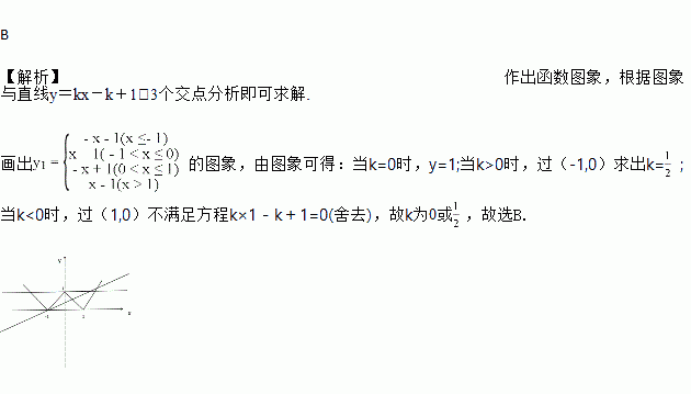 已知函数的图象为“W”型,直线y=kx-k+1与函数y1的图象有三个公共点,则k的值是( )