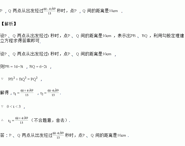 如图.、、、为矩形的个顶点:,,动点、分别从点、同时出发,点以的速度向点移动,一直到达点为止:点以的速度向点移动,经过多长时间、两点之间的距离是?