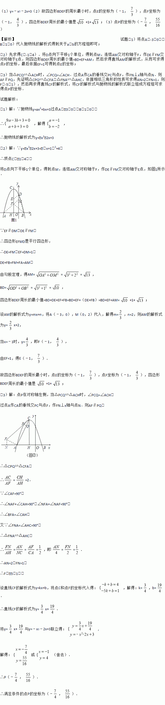 (3)如图2,点P为对称轴左侧,x轴上方的抛物线上的点,PQ⊥AC于点Q,是否存在这样的点P使△PCQ与△ACH相似?若存在请求出点P的坐标,若不存在请说明理由.