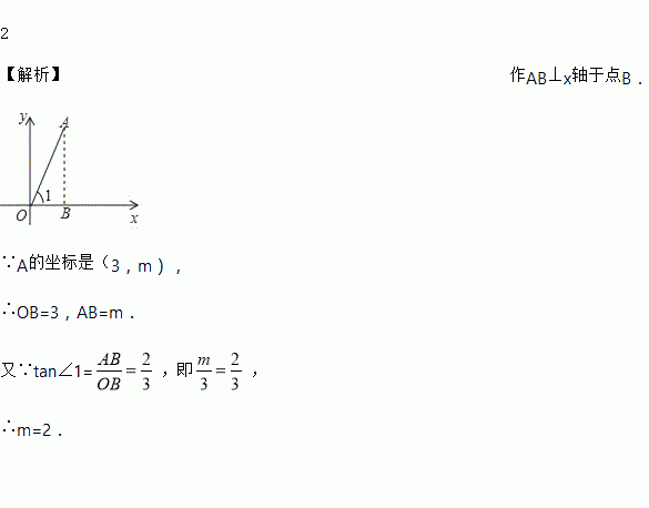 如图,如图,点A(3,m)在第一象限,OA与x轴所夹的锐角为∠1,tan∠1=,则m的值是_____.