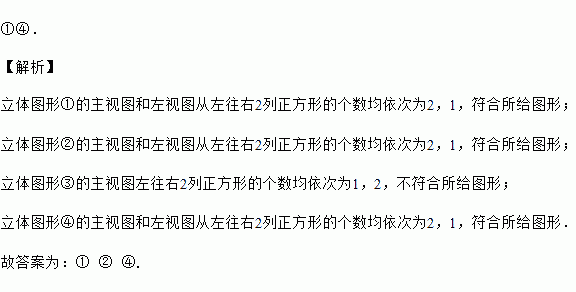 如图所示是由四个相同的小立方体组成的几何体分别从正面和左面看到的图形,那么原几何体可能是_____.(把图中正确的立体图形的序号都填在横线上)