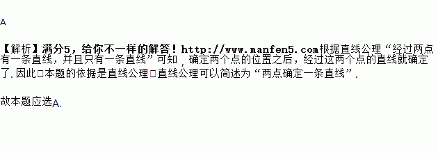 A. 两点确定一条直线 B. 两点确定一条线段 C. 过一点有一条直线 D. 过一点有无数条直线
