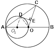 与⊙O的弦AC相交于点D,DE⊥OC,垂足为E.![]()