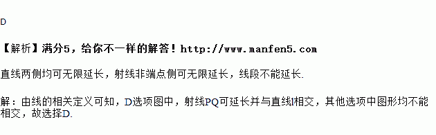 下列选项中直线l、射线PQ、线段MN中能相交的是( )
