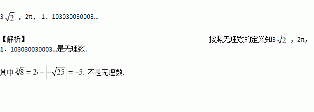 在3,- , ,0.5,2π,3.14159265,- ,1.103030030003…中,无理数有______ (多写或少写都不得分)
