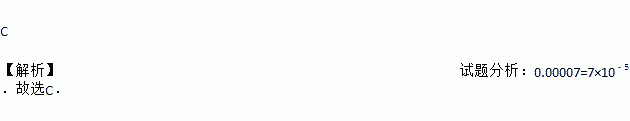 A. 7×10﹣6 B. 70×10﹣5 C. 7×10﹣5 D. 0.7×10﹣6