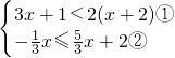 由①得:x<3,