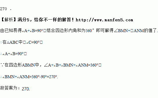 如图在Rt△ABC中,∠C=90°,若沿图中虚线MN剪去∠C,则∠BMN+∠ANM=_____度.
