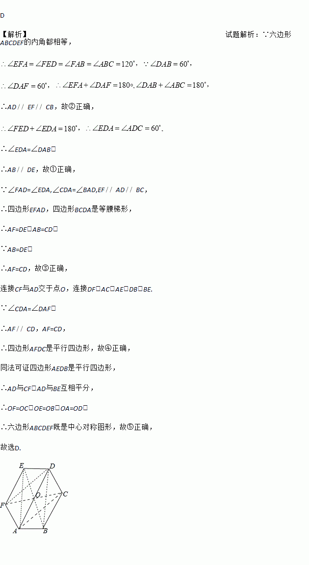 如图,六边形ABCDEF的内角都相等,