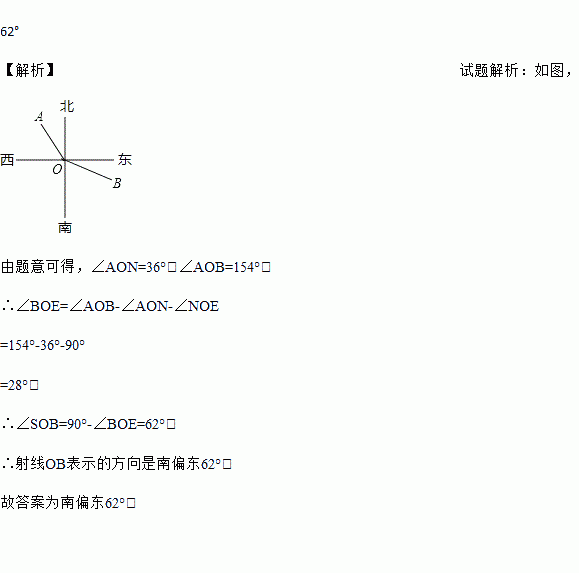 如图,射线OA表示北偏西36°,且∠AOB=154°,则射线OB表示的方向是_____.