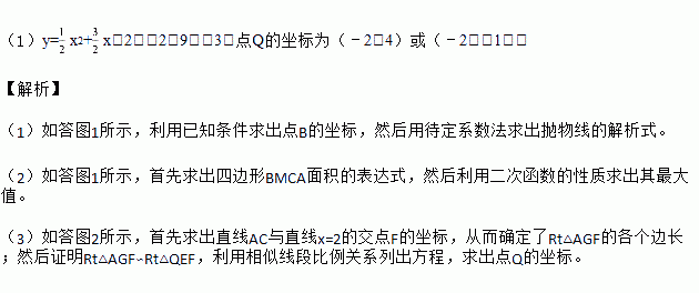 (3)在(2)中四边形BMCA面积最大的条件下,过点M作直线平行于y轴,在这条直线上是否存在一个以Q点为圆心,OQ为半径且与直线AC相切的圆?若存在,求出圆心Q的坐标;若不存在,请说明理由.