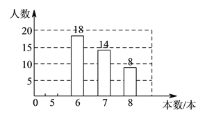 中央电视台的《朗读者》节目激发了同学们的读书热情,为了引导学生“多读书,读好书”,某校对八年级部分学生的课外阅读量进行了随机调查,整理调查结果发现,学生课外阅读的本数量少的有本,最多的有![]()