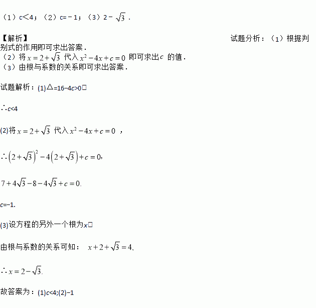 (2)如2+ 是该方程的一个根,则实数c的值是