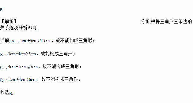 A. 4cm,6cm,11cm B. 3cm,4cm,5cm