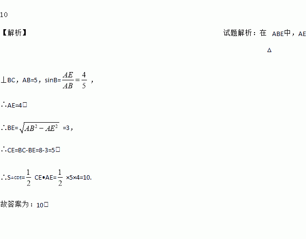 如图,在?ABCD中,AE⊥BC,垂足为E,AB=5,BC=8,sinB=,那么S△CDE=_____.