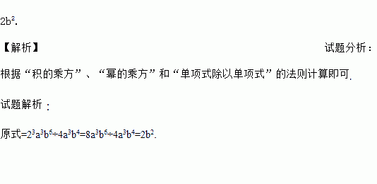 计算:(2a)3·(b3)2÷4a3b4.