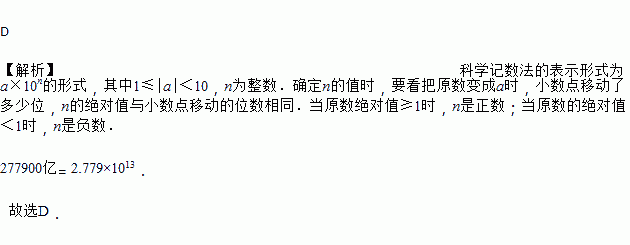 2017年我国货物贸易进出口总值277900亿元人民币,用科学记数法表示这个数为( )