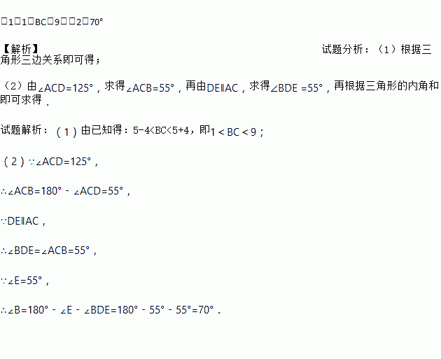 (1)若AB=4,AC=5,则BC边的取值范围是 ;