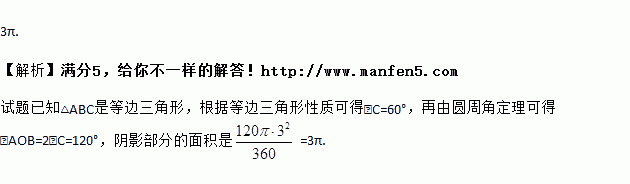 如图,△ABC是⊙O的内接正三角形,⊙O的半径为3,则图中阴影部分的面积是 .
