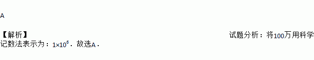 C919大飞机是中国完全具有自主知识产权的干线民用飞机,其零部件总数超过100万个,将100万用科学记数法表示为( )