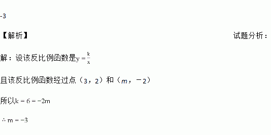 已知反比例函数的图象经过点(3,2)和(m,-2),则m的值是 .