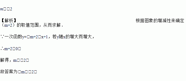 一次函数y=(m+2)x+1,若y随x的增大而增大,则m的取值范围是_____.
