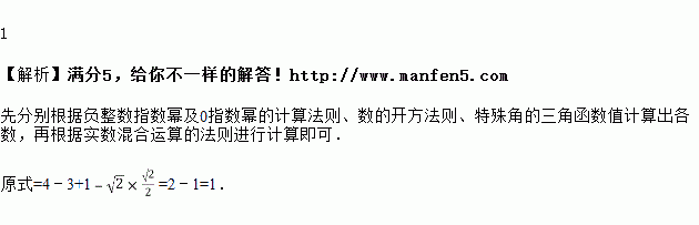 计算:()﹣2﹣+(﹣4)0﹣cos45°.