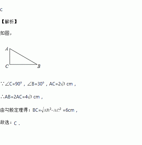 已知直角三角形中30°角所对的直角边长是cm,则另一条直角边的长是( )