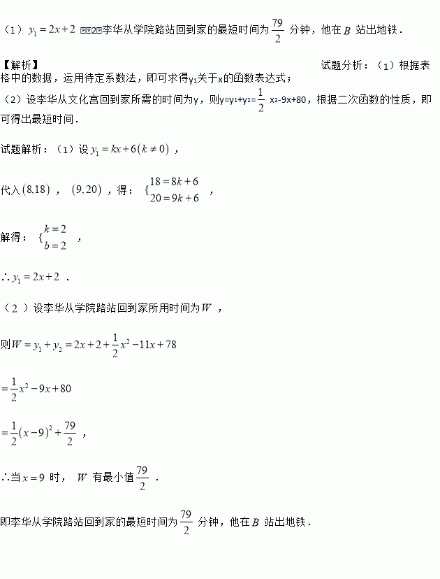 ,求李华从学院路站回到家的最短总时间,并指出他在哪一站出地铁.