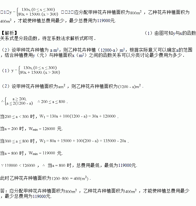 之间的函数关系如图所示,乙种花卉的种植费用为每平方米100元.