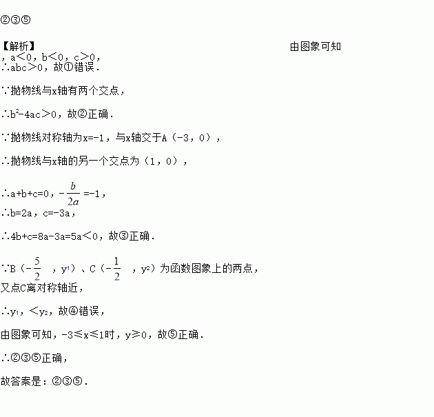 ,y2)为函数图象上的两点,则y1>y2;⑤当-3≤x≤1时,y≥0,其中正确的结论是______.(填序号)