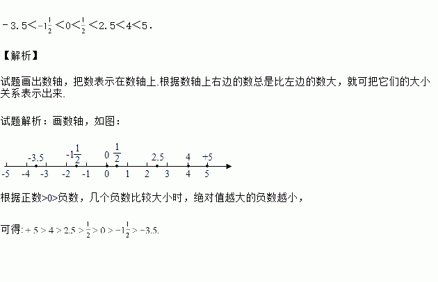 画出数轴,在数轴上表示下列各数,并用“<”连接:+5,﹣3.5,,,4,0,2.5.