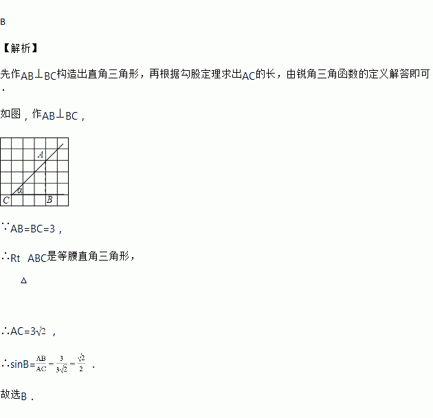 在△ABC中,∠C=90°,AC=9,sinB=,则AB=( )