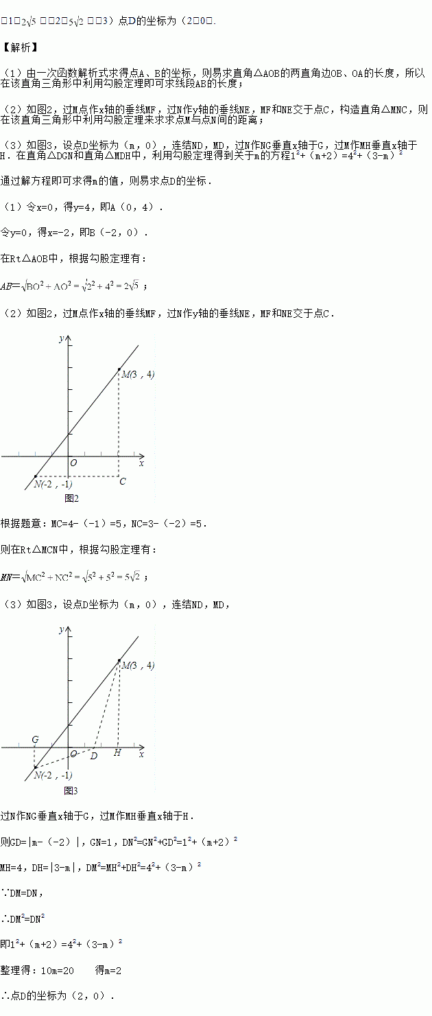 (3)在(2)的基础上,若有一点D在x轴上运动,当满足DM=DN时,请求出此时点D的坐标.
