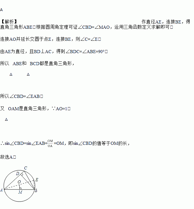 如图,已知⊙的半径为1,锐角三角形内接于⊙,于点,于点,则的值等于( )