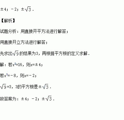 若x2=16,则x= ;若x3=﹣8,则x= ;的平方根是 .