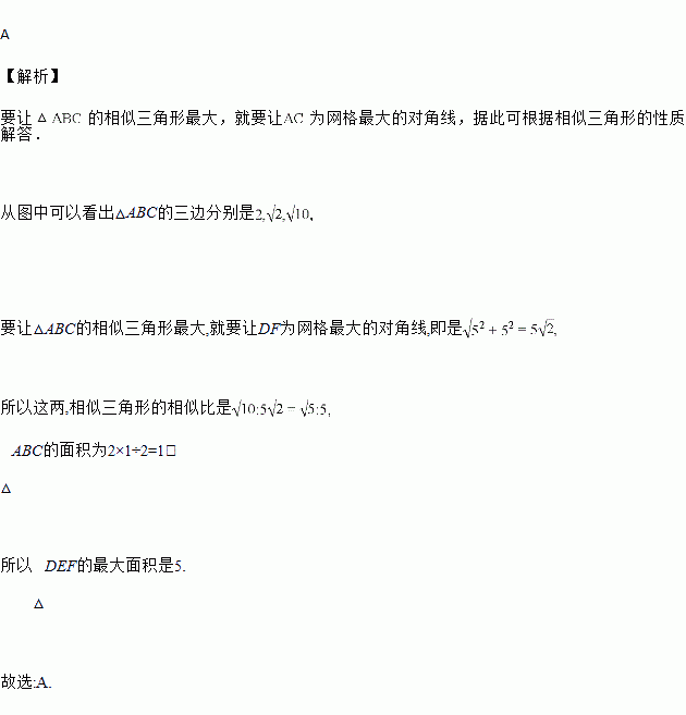 如图,在的正方形方格中,的顶点都在边长为的小正方形的顶点上,作一个与相似的,使它的三个顶点都在小正方形的顶点上,则的最大面积是( )