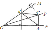 分析:过点C作CF⊥OM于点F,根据垂直平分线上的点到线段两端点的距离相等,得OB=AB,根据角的平分线上的点到角的两边的距离相等,可得AC=CF,再根据三角形的面积计算公式得出△OBC的面积.