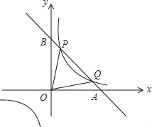 已知直线y=kx+b与x轴、y轴分别交于A、B两点,与反比例函数y=交于一象限内的P(,n),Q(4,m)两点,且tan∠BOP=.